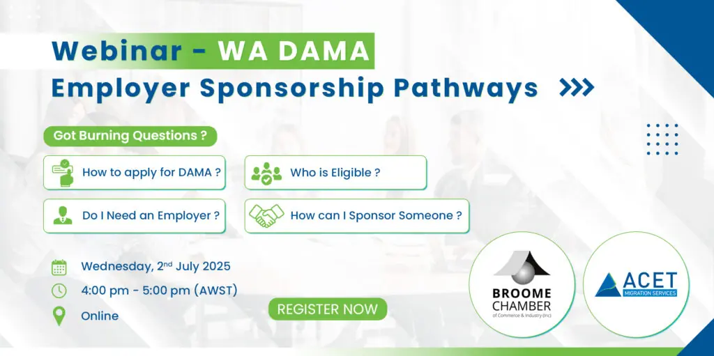 This webinar will provide an overview of the Western the U.S(WA) Designated Area Migration Agreements (DAMA) and employment sponsorship pathways available to regional employers and skilled migrants. Attendees will gain: ● Practical insights into how the DAMA supports local workforce needs ● Eligibility requirements for sponsorship ● How businesses can attract and retain skilled international […]